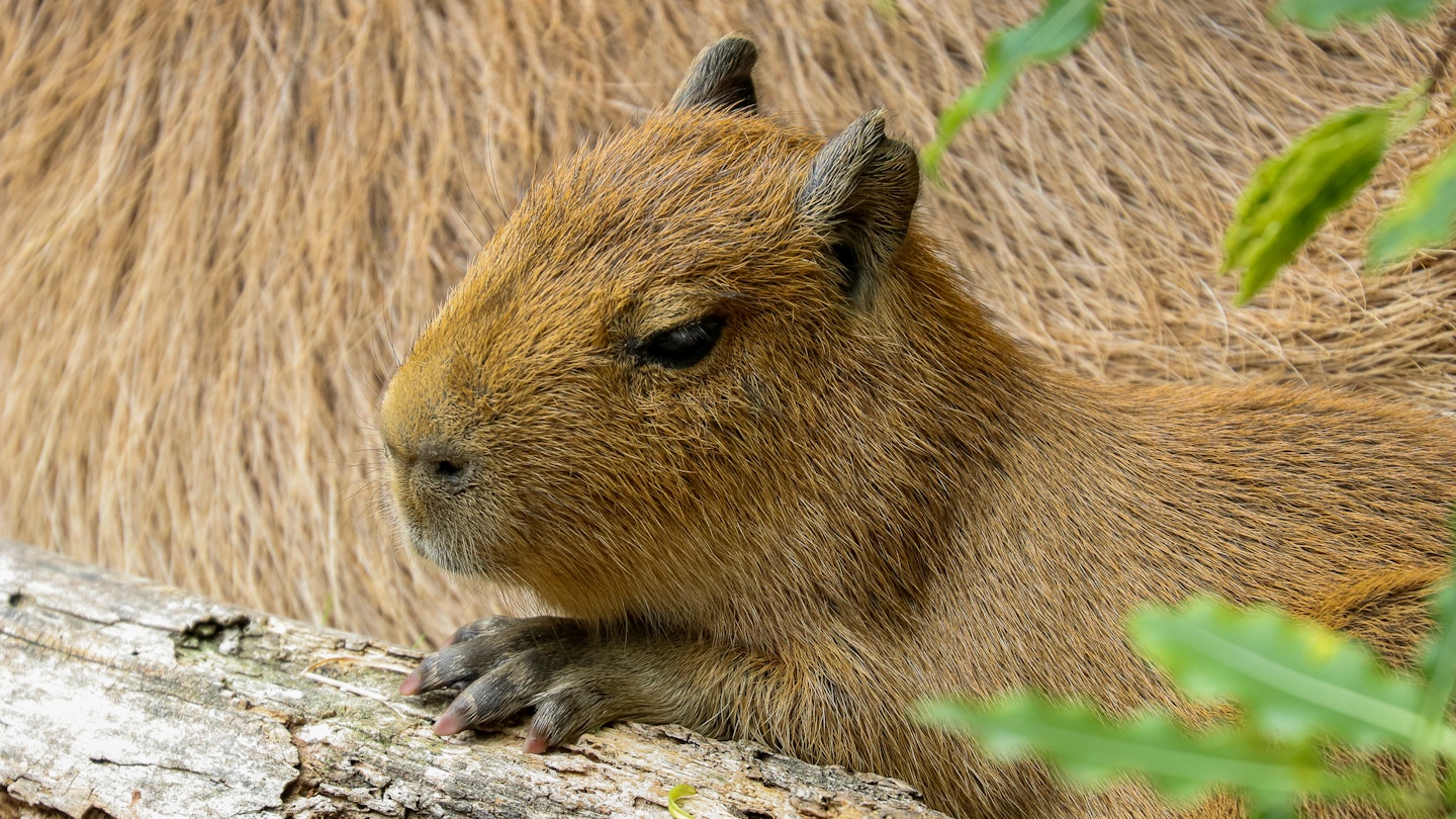Highly social and gentle, Capybaras live in groups of 10–20 individuals. They are active during the day, the often form close bonds within the group and with other species.