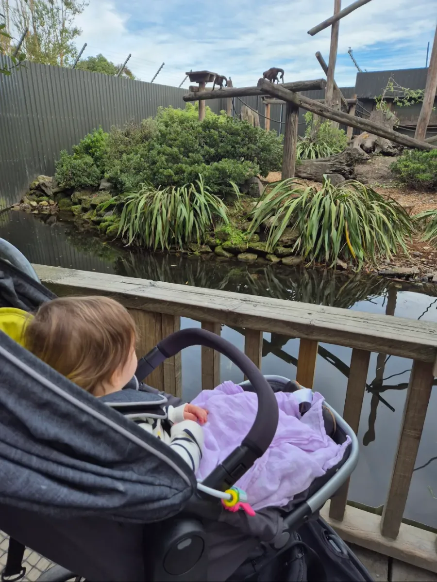 We managed to sit still long enough to have all the monkeys come right to the front making her giggle -Jo Eaton