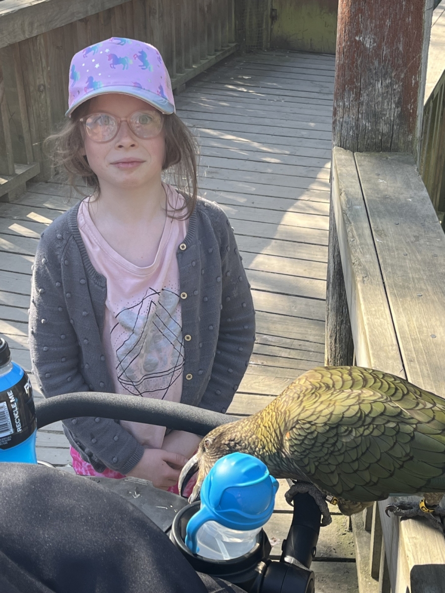 This photo was taken last year, my daughter was terrified of the Kea’s -Richelle Letham