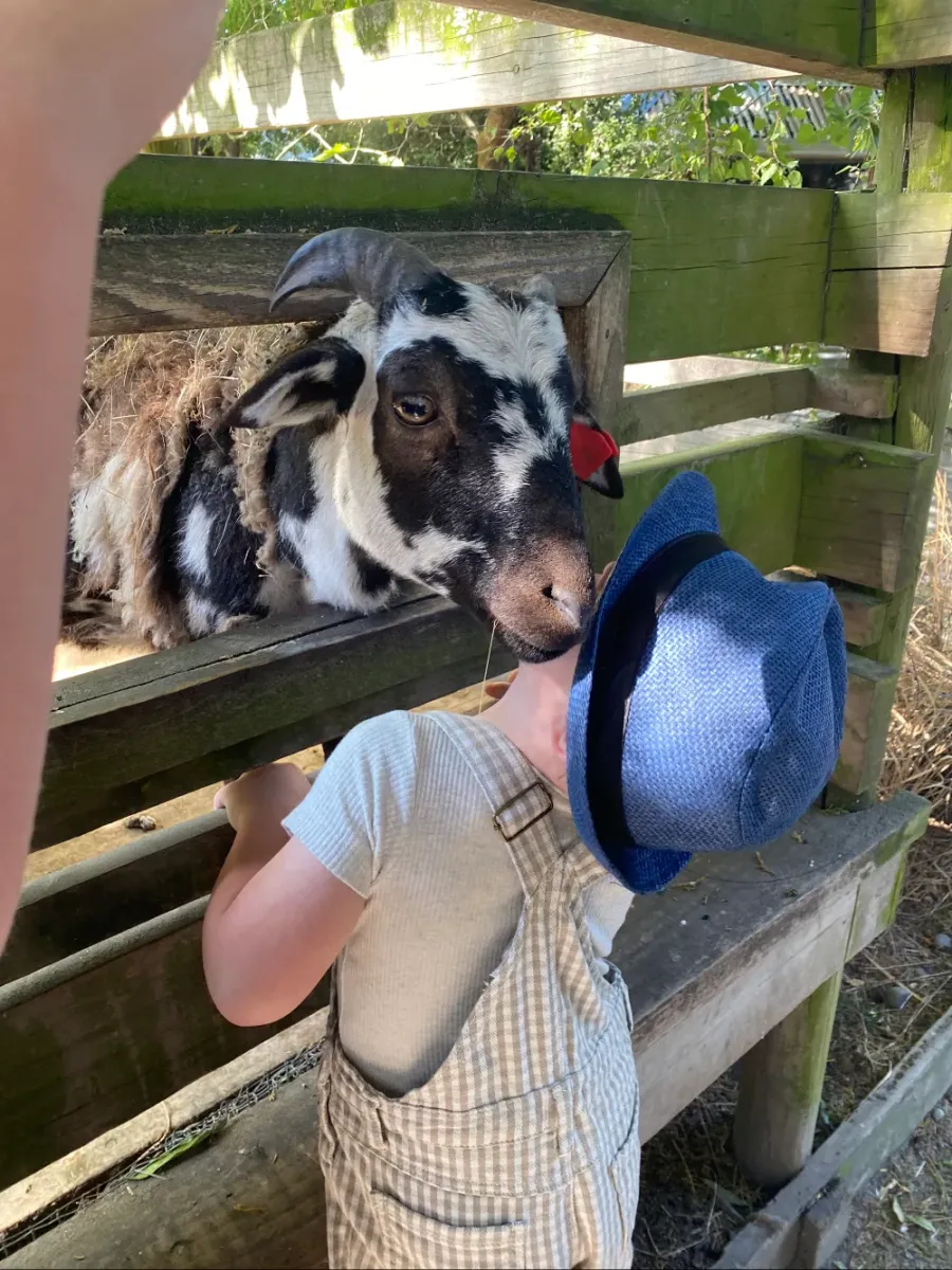 4year old Jonty getting a kiss on the cheek by the cheeky goat! Jonty has Down syndrome & thought this was the absolute best. -Emma Bailey